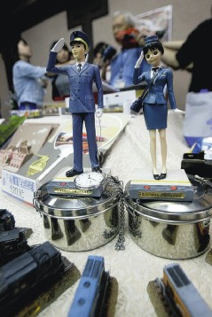 慶祝臺灣鐵路創建121年紀念商品開賣,琳瑯滿目。(圖:臺灣《聯合晚報》)