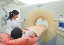 臺灣能夠開展醫療健康檢查的醫院已準備好搶攻大陸頂級客戶層,以高單價一日健康檢查及醫學美容最有利。圖為臺灣新光醫院計算機斷層掃描儀,以3D立體心臟超音波檢測心血管,每次檢查花費約18000元新臺幣。(圖:臺灣《中國時報》)