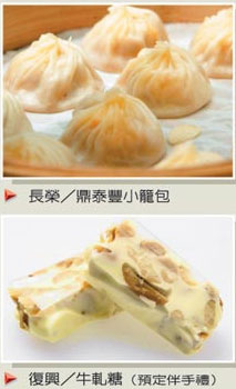 臺北飛對岸的旅客,則可吃到北京味的雞米鎖雙龍、北京烤鴨,上海名菜蝦仔烏參、廣式芝麻棗泥核桃酥等。