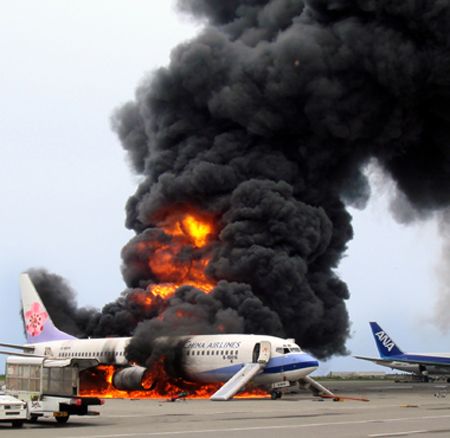 華航在日本琉球那霸機(jī)場(chǎng)發(fā)生火燒機(jī)意外!華航緊急疏散157個(gè)旅客,8個(gè)機(jī)組員也平安脫逃。圖為蔡湘雪旅客逃出時(shí)所拍的現(xiàn)場(chǎng)華航飛機(jī)爆炸畫面。記者周文郁/翻攝