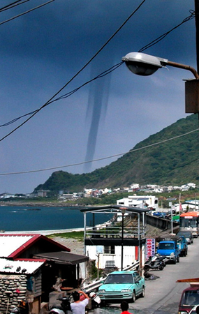 臺東蘭嶼附近海域,7月底出現(xiàn)水龍卷,如圖一條巨大水柱直沖天際景象壯觀,水龍卷從蘭嶼機場往漁人部落移動,八分鐘后消失。記者陳明成/攝影