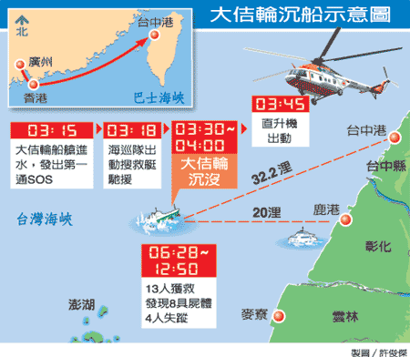 “大佶”輪在臺灣代理商耀太船務公司說,該公司已派員處理,將等確定死亡船員名單后,與大陸家屬聯系處理后事。