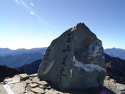 手腳并用的爬上巍巍破碎裸露的垂直角度之后,九點十分,第一次登上玉山。