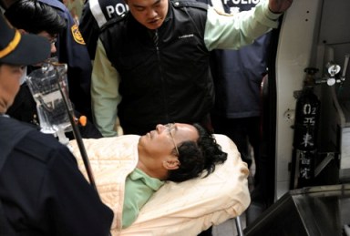 組圖:陳水扁躺在擔(dān)架上打點滴(2)