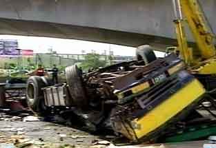 中新網(wǎng)12月20日電 據(jù)臺灣東森新聞網(wǎng)報(bào)道,臺中縣今天上午發(fā)生一起重大車禍,一輛15噸重的大貨車,疑似煞車失靈,失控闖紅燈直接撞上前方4臺摩托車,造成3死2傷的悲劇。
