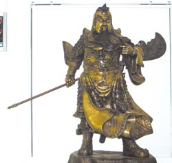 中新網(wǎng)5月6日電 一尊面帶威嚴(yán)、與真人一般高的銅制關(guān)公像矗立在臺(tái)中縣太平分局,經(jīng)過的人看了,一股正義感油然而生。其實(shí),這尊關(guān)公像是現(xiàn)任分局長郭瑞權(quán)的私人收藏,他說,這么作是藉此提醒大家,要效法關(guān)公的正義之氣。