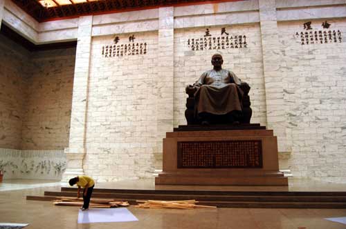 一大早中正紀(jì)念堂的大門一打開,觀光客們迫不及待進(jìn)入大廳和蔣介石銅像合影留念。不少人都認(rèn)為,把特展上花花綠綠的風(fēng)箏、五顏六色的圖片廣告牌移除,恢復(fù)到像以往的模樣,看起來莊嚴(yán)多了,也比較順眼,只可惜臺(tái)軍儀隊(duì)和憲兵沒有同時(shí)恢復(fù)表演和站崗,感覺上似乎少了點(diǎn)什么。
