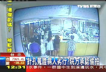據臺灣TVBS電視臺報道,這個醫院堅稱是消防灑水系統的噴口竟然是監視錄像機,臺北市議員接獲投訴,醫院裝針孔偷拍病人,火氣很大。臺北市議員莊瑞雄說,“你們到底要看什么?因為那一間不是保護病房呀,除了保護病房,是不能裝這個(監視器)的呀,醫學院應該都有念到呀!