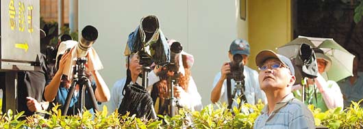 臺(tái)北縣攝影學(xué)會(huì)人員說(shuō),如此盛況已持續(xù)一周了,還有人凌晨三、四點(diǎn)就來(lái)報(bào)到,想捕捉成鳥(niǎo)喂食幼鳥(niǎo)的畫(huà)面。