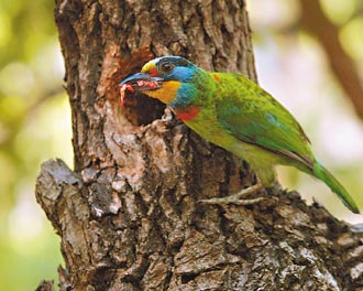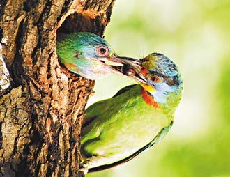 樹(shù)洞里的五色鳥(niǎo)幼鳥(niǎo)已漸漸成長(zhǎng),快要與成鳥(niǎo)一樣,“可能這幾天就會(huì)飛了,”想欣賞的人要把握時(shí)機(jī)。