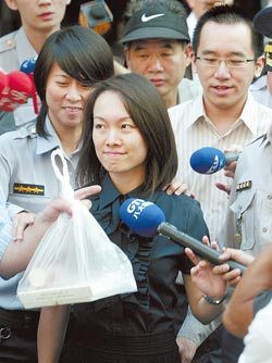 陳幸妤6日在進入法庭時大叫被媒體鏡頭打到。(圖:臺灣《中國時報》)
