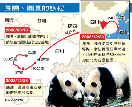 熊貓團團圓圓將抵臺。提早到四川熟悉照顧熊貓的臺北市立動物園飼養(yǎng)員游雪音,將擔負引兩只熊貓入籠的重任,她認為,團團憨厚、圓圓精明,任務確有挑戰(zhàn)性。