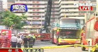 中新網4月24日電 據臺灣TVBS報道,臺灣信義商圈24日發生一起嚴重工安意外,一輛載有25人的廣東旅行團游覽車,經過工地時被37層樓高的起重機吊臂砸到,導致3人輕重傷和3人死亡。臺北市長郝龍斌到意外現場勘災,對旅行團員表示關心。