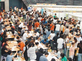 就業(yè)博覽會9日在苗栗縣巨蛋體育館舉行,涌入近四千謀職人潮,會場爆滿。圖片來源:臺灣《聯(lián)合報》