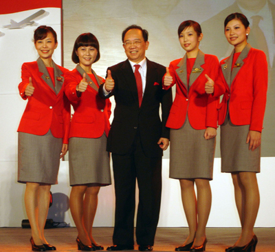 中新網11月16日電 據“中央社”報道,臺灣遠東航空十六日舉行五十周年慶,董事長樂大信(中)表示,展望兩岸市場是未來最大目標。