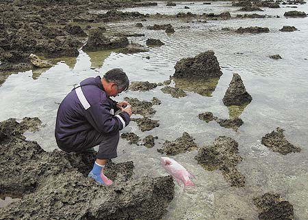 臺灣綠島暴斃的魚群原本只出現在燈塔到公館沿岸,六日連柚子湖一帶也出現,到底是毒物擴散還是單純地被沖刷到此,引來當地居民高度關切,拍照存證。臺灣《中國時報》圖