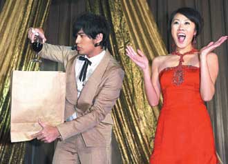 “南拳媽媽”團(tuán)長(zhǎng)彈頭,昨天迎娶交往半年的女友洪端偋,晚間舉辦盛大豪華婚宴,介紹兩人認(rèn)識(shí)的周杰倫,婚禮上花心思帶來(lái)一段“超級(jí)魔術(shù)秀”,神奇地把新娘子漂浮空中。(臺(tái)灣《聯(lián)合報(bào)》圖)