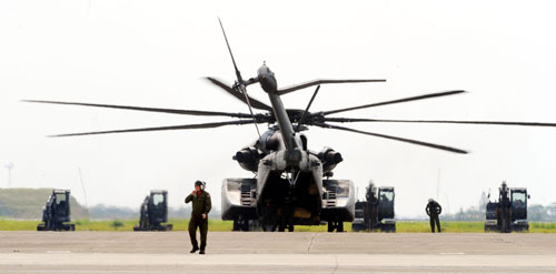 這架編號546MH-53E海龍直升機,屬于防衛性裝備,原配屬美軍大西洋第三艦隊,直到2007年才調駐太平洋艦隊,不過這兩年已有過豐富救災經驗,支持過幾次亞洲的人道救援行動。
