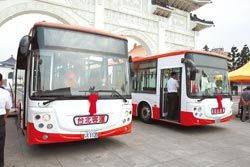 中新網2月26日電 據“中央社”報道,在臺北縣府補助下,臺北客運已引進油電混合動力公交車,臺北縣長周錫瑋及臺北客運董事長李博文等人25日剪彩,首批15輛公交車上路,往返板橋與新莊的“99線”路線。