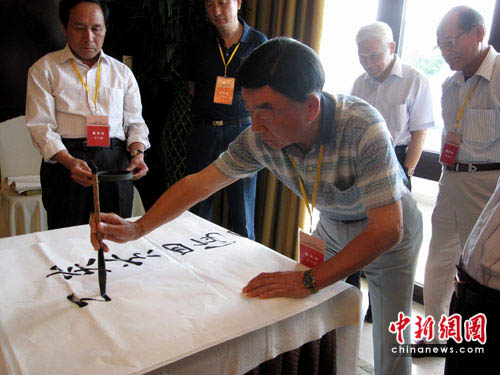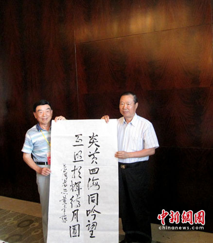 來自臺灣原海軍副總司令官沈方枰中將與大陸的海軍東海艦隊原司令員趙國鈞中將同為一組打球的兄弟,看到記者拍照,沈方枰中將對記者表示“來,給我們兄弟來一張。”