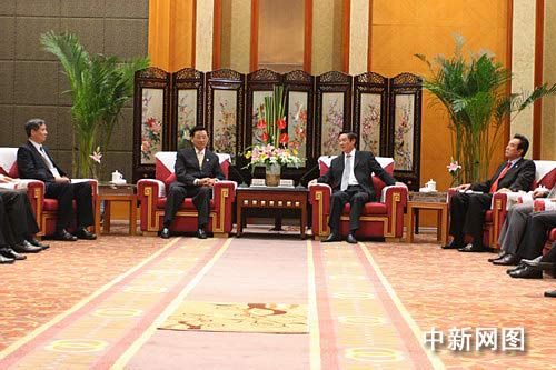 中新網成都7月14日電(霍潺 陳典路)中共四川省委書記劉奇葆十四日在成都會見了臺灣海基會董事長江丙坤、大陸海協會會長陳云林一行,并在災后重建、川臺交流合作等方面進行了深入的交流。