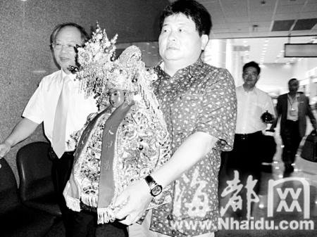昨天早上,大甲鎮瀾宮董事長顏清標前往臺中港送行,并抱著媽祖神像陪同上船;此次恭請包括大甲鎮瀾宮、桃園慈護宮及云林縣麥寮拱范宮共三尊媽祖前往湄洲祖廟進香,并將配合舉行媽祖文化周活動。鎮瀾宮還將代表臺灣媽祖信眾,在論壇期間提出一系列促進民間文化交流的建議,包括將邀請大陸北方的戲劇表演團體到臺灣進行演出活動。 (記者 楊陽)