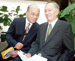 彭明敏說,當(dāng)時在警總監(jiān)控下,他秘密求助日本“獨(dú)盟”成員宗像隆辛,并透過與自己外表相似的日本人阿部賢一,雙方約定在臺北“交換身分”。為求行動成功,彭明敏不只拿變造過的阿部賢一護(hù)照,出境時還戴上黑色膠框眼鏡,并在人中黏上兩撇小胡須,搭上梳得閃亮的油頭,神似喜劇大師“卓別麟”,才終于瞞天過海,順利飛往瑞典取得政治庇護(hù)。