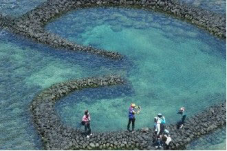 初見“雙心石滬”的游客,總以為這是自然地景,殊不知這精巧的石滬全出自當(dāng)?shù)貪O民之手,能維持如此完美的造型,得靠漁民時(shí)時(shí)維護(hù)修補(bǔ)。就因?yàn)椤半p心石滬”造型美得像藝術(shù)品,也成為七美島最著名的旅游景點(diǎn),更期待能近距離接觸。