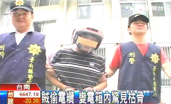 據臺灣TVBS電視臺報道,臺南縣一名小偷潛入歇業的工廠偷電纜,意外發現變電器箱里竟有一具白骨。據臺灣警察分析,死者可能是要偷電纜意外觸電,死亡時間超過2年;發現白骨的竊賊,也因為留在現場,通緝犯身份曝光,被帶回警局。