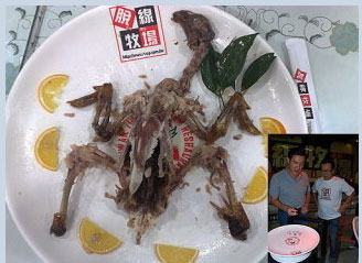 據臺灣TVBS 報道,“馬英九吃過的桶仔雞”?這只雞整只被啃得干干凈凈,只剩下骨架,十足展現馬英九節能減炭、愛物惜物的特色,來源無庸置疑,只是這雞怎么會落入賣家手中。