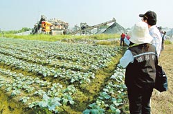 臺南縣環保局稽查員16日到爐碴場現勘,旁邊的菜圃亦經環保人士指遭受污染。圖片來源:中國時報