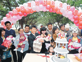 桃源鄉梅山、梅蘭及勤和村的災民,自從災后下山,有7名婦女生產,還有3名婦女也已屆預產期。昨天高雄縣長楊秋興在災民重返家園前,為7名一出生就待在安置中心的嬰兒慶生,并迎接即將出生的娃娃。