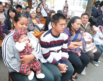 高雄縣桃源鄉風災災戶,在安置期間出生7名嬰兒,由于21日即將返鄉,有些父母喜悅中難掩愁容,不知將來怎么辦。圖片來源:聯合報