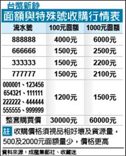 據臺灣媒體報道,在臺灣,看看鈔票的看流水號,有些特殊的號碼則可能為鈔票增值。上文所說的“666666”就是其一。