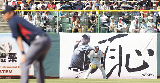 白底黑字的“恥”字,在全壘打墻二十三面廣告牌中,顯得格外搶眼,這塊廣告牌掛在左邊(左外野)數(shù)來第二塊位置,剛好正對熊隊休息室,也隱含意義。