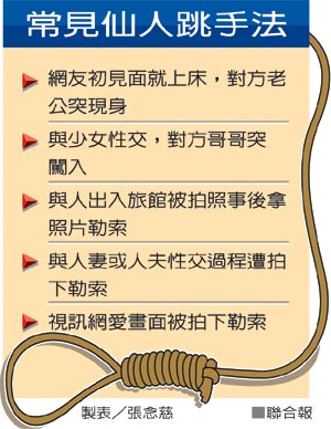 中新網(wǎng)3月17日電 據(jù)臺(tái)灣《聯(lián)合報(bào)》報(bào)道,“要不要一起賺大錢?”16歲的陳姓援交女上網(wǎng)發(fā)現(xiàn),男子徐德欽、謝丁玄征求仙人跳女主角,認(rèn)為比援交好賺而加入;從去年6月起,這伙人以援交方式設(shè)局仙人跳至少6次,詐財(cái)上百萬元(新臺(tái)幣,下同)。