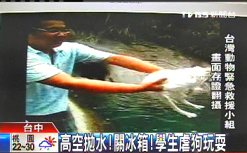 中新網5月1日電 據臺灣媒體報道,網絡上又出現疑似虐狗片段,有網友發現,有飼主把狗關在冰箱里,還高空把狗拋到水中,虐狗影片全都放上網絡。動物救援小組經過比對,發現飼主是苗栗大湖農工一位女學生。不過她供稱,狗狗平常就愛玩水,當時將它拋飛,只是開玩笑,不是故意的,但愿意向社會大眾道歉。