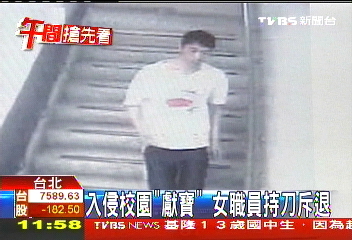 中新網(wǎng)5月17日電 據(jù)臺灣TVBS電視臺報道,一名男子在上星期五晚上,入侵臺北商業(yè)技術(shù)學(xué)院,趁著一名女職員加班獨自在辦公室,竟然脫下褲子騷擾女職員,而這名女職員相當(dāng)鎮(zhèn)定,拿起美工刀喝斥男子,這名男子才落荒而逃。