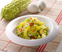 苦瓜含有豐富的維生素,只是苦瓜味道苦,許多大人、小孩都不愛,讓媽媽們實(shí)在傷透腦筋;但一道客家小炒“苦瓜黃金蛋”打破許多人不吃苦瓜的慣例,事前的準(zhǔn)備工夫也很簡(jiǎn)單,只要抓到降低苦瓜苦味的小撇步,馬上成為一道可口佳肴;尤其若能采用萃取自上等天然鮮雞的鮮雞晶來(lái)調(diào)味,不但能提升菜肴的鮮甜度,經(jīng)樞紐科技顧問(wèn)公司專業(yè)證實(shí),在等咸度下,還可以減少40%的鹽份攝取,對(duì)人體健康較無(wú)負(fù)擔(dān)。