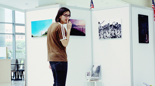 最近世新圖文傳播暨數(shù)字出版系的畢業(yè)展,主題叫做“控制”,但最受矚目的作品卻叫“野放”,拍攝者阮芊菡展出多幅全裸攝影作品,拍攝地點都在臺灣,照片里一絲不掛的有男有女,有法國男孩在水田里跳著,有女孩躺在仙跡巖的草坪上,男孩在擎天崗?fù)αⅲ钴份兆约涸诤_呄硎苁锕狻K耐麛z影集《野放》,也在11日正式發(fā)行。