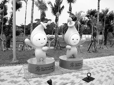 此次吉祥物的設計概念是以高雄市“光和水”兩大主題作為靈感,“高妹”與“雄哥”頭部造型像個小水滴,頭上的小球吸收太陽能后,身體就會發(fā)光,此構想概念是源自高雄世運會主場館特有的太陽能發(fā)電系統(tǒng)建筑設計,全球第一座使用太陽能的綠色建筑運動場館,傳達著對綠色能源、環(huán)境保護等議題的關心。(鄭固固攝)