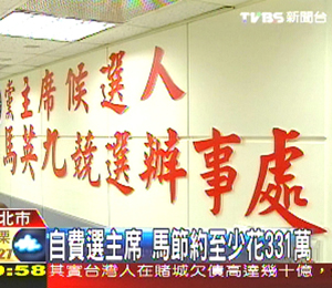 馬英九這回競選黨主席全花私人存款,包括付給黨中央的作業(yè)費200萬,70多坪辦公室約40天的租金17萬元,競選活動14天,下鄉(xiāng)的油料費約84萬,文宣以及團隊下鄉(xiāng)的交通費、雜支,這回競選最少331萬元。