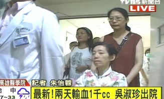 醫(yī)院表示,吳淑珍已經(jīng)回復(fù)到她往日的正常狀況,輸血并施打完鐵劑后,本來(lái)會(huì)希望病人住院多休息一天,但吳淑珍擔(dān)心醫(yī)院冷氣太冷,設(shè)備不全,不方便,堅(jiān)持出院,因此希望在療程后,可以回家休養(yǎng),醫(yī)院也會(huì)持續(xù)追蹤病情。