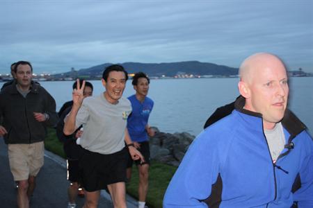 馬英九26日上午(當地時間)起個大早,在舊金山下榻飯店外慢跑。聯合報圖