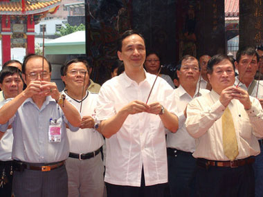 據悉,朱立倫19日上午在中和市長邱垂益及地方民代陪同下,到舊居住樓下面包店、照相館等商家拜訪,沿路拜票到里民活動中心,都獲老鄰居們歡迎,讓他直呼感動。隨后,到福和宮、廣濟宮上香,祈求能順利當選。