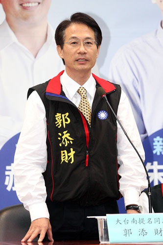 中新網6月4日電 據“中央社”報道,國民黨大臺南市長參選人郭添財今天先后拜會臺南縣議會國民黨團及新營市長李宗智。郭添財說,各界的指教他都會虛心接受,并配合勤走基層,拉抬選情。