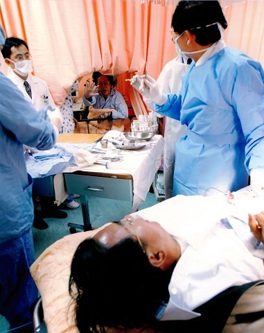 資料圖:319槍擊案受傷治療過程中,呂秀蓮曾掀開布簾向陳水扁示意。