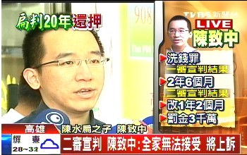 二審宣判出爐,陳致中從一審的2年6個月,罰金1.5億(新臺幣,下同),改判為1年2個月,并科罰金3000萬,不過他卻相當不領(lǐng)情。