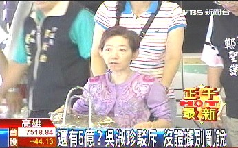 吳淑珍嚴詞否認扁家在海外另有5億新臺幣存款
