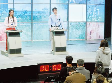 馬英九與謝長廷首場電視辯論會將于今天登場,主辦單位昨天排練民眾提問時,特地在左邊位置準備小木板給謝長廷,讓其與馬英九高度相當。(圖:臺灣《中國時報》)